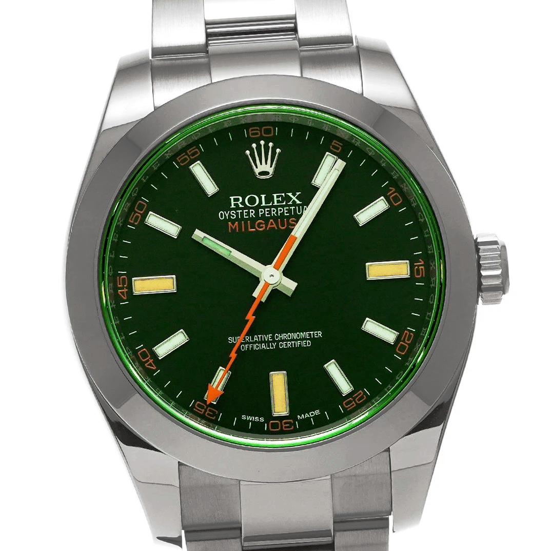 Developed for CERN researchers, the Milgauss is famous for its resistance to magnetic fields and the iconic orange lightning-bolt second hand. With its unique green sapphire crystal, it stands out as the rebel of the Rolex family. Since its recent discontinuation, investment value has surged. Japan is the best place to find scratch-free examples of this highly polished model.